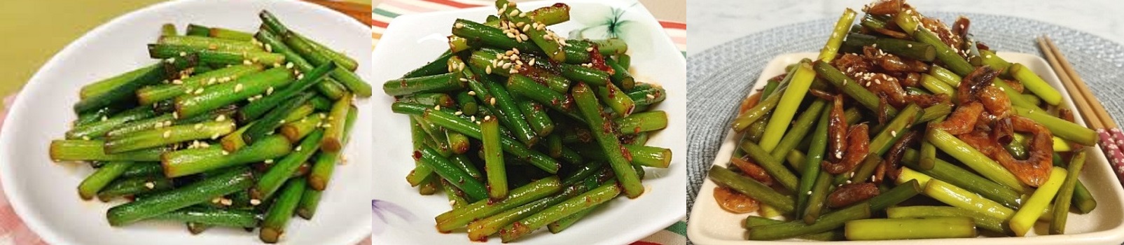 1. 마늘쫑 볶음 : 마늘쫑, 대파, 양파, 다진마늘, 식용유, 통깨, 참기름, 진간장, 올리고당