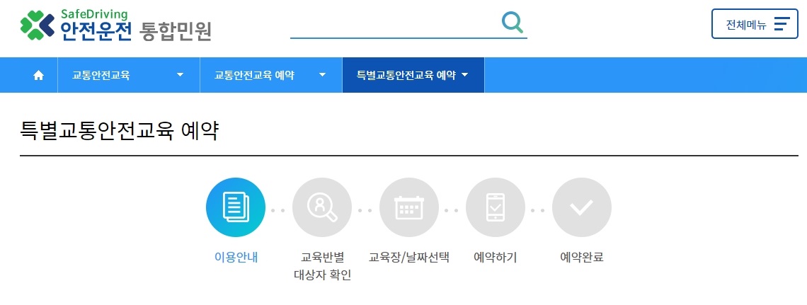 홈페이지 접속 화면입니다. 여기에서 특별교통안전교육 메뉴를 선택하고 들어가주시면 되는데요.