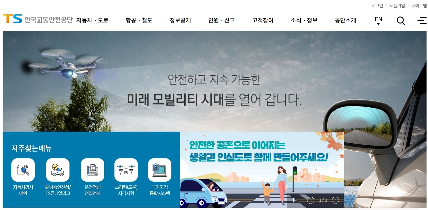 한국교통안전공단 홈페이지는 네이버나 다음, 구글에서 검색을 하여 쉽게 접속할 수 있습니다. 편한 방법으로 검색을 하여 접속하시면 되구요.