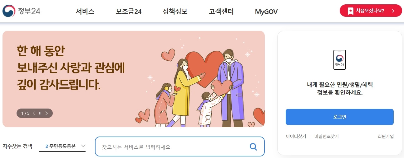 정부24 홈페이지는 다들 아시죠? 여기를 이용하시면 되는건데요.