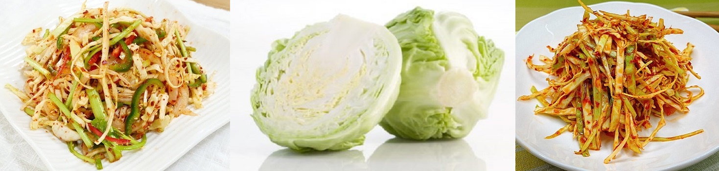 1. 양배추 생채무침 : 양배추, 간마늘, 식초, 매실청, 물엿, 멸치액젓, 국간장, 고춧가루, 다진파, 깨소금