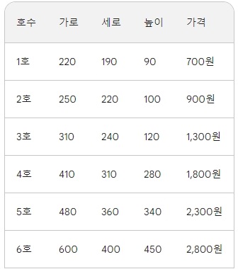 우체국 박스 사이즈