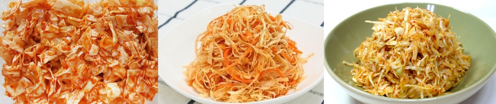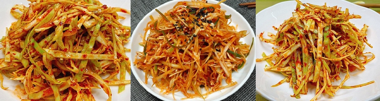 1. 초스피드 양배추 생채 : 양배추, 간마늘, 식초, 매실청, 물엿, 멸치액젓, 간장, 고춧가루, 다진파, 깨