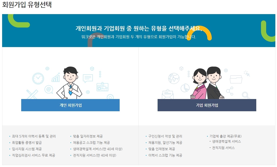 워크넷만 이용을 하실 때는 위의 과정을 통해서 회원가입을 진행하게 되는데요. 4단계로 진행이 되며 어렵지 않게 가입이 가능합니다.