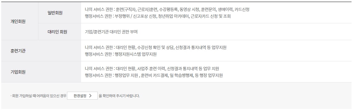개인회원과 훈련기관, 기업회원은 어떤것이 다른지에 대해서 궁금하신 분들이 있을테니 첨부합니다. 참고하세요.