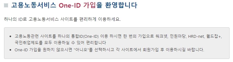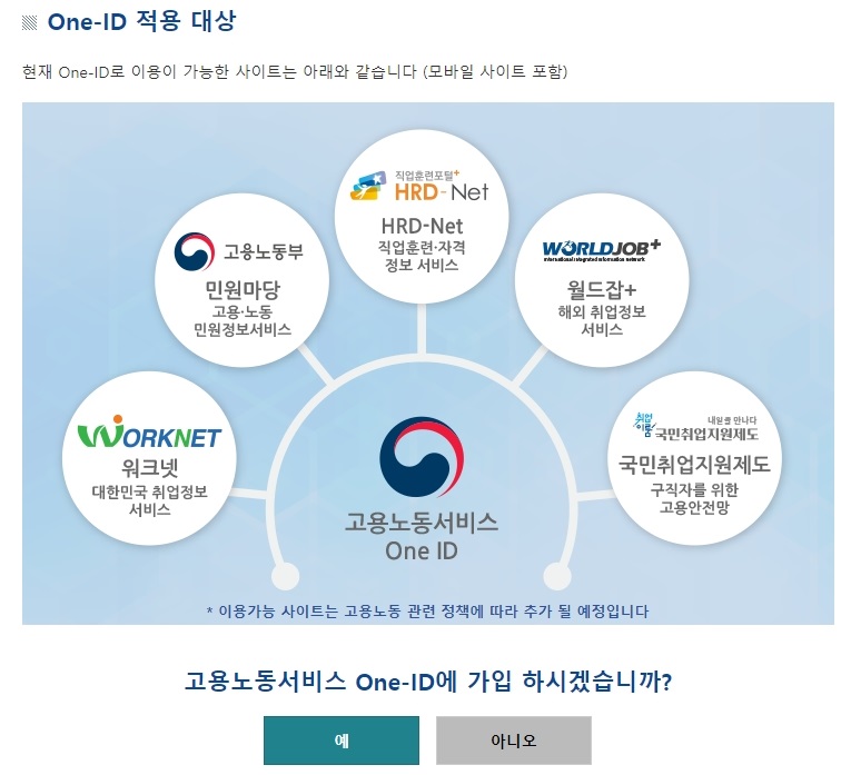 취업에 필요한 여러가지 사이트를 한가지 아이디로 관리가 가능한데요. 이건 선택이기 때문에 hrd 사이트만 가입을 하시려거든 아니오를 눌러주시면 되겠습니다.