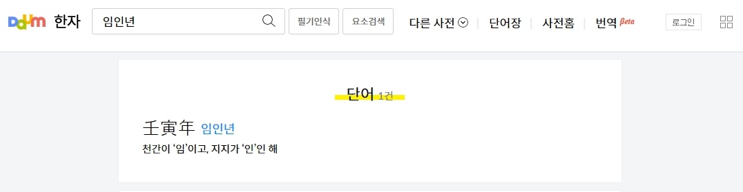그러면 해당 한글에 알맞는 한자가 검색되어 나옵니다. 당연히 한자가 아닌 한글은 검색이 안됩니다.