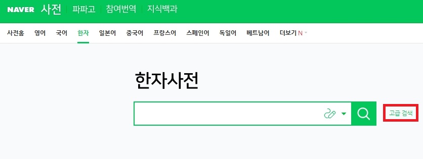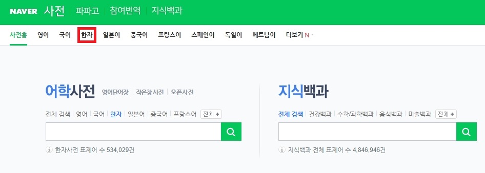 들어가신 후에 한자 메뉴를 눌러 한자사전 페이지로 접속해주시면 됩니다.