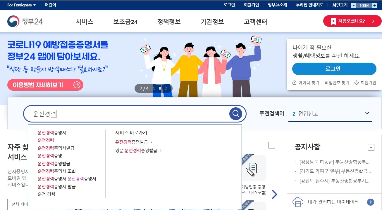 바로 이곳이 민원처리가 가능한 정부24인데요. 여기에서 검색을 통해서 민원을 찾아주시는것이 편하게 찾을 수 있는 방법이에요.