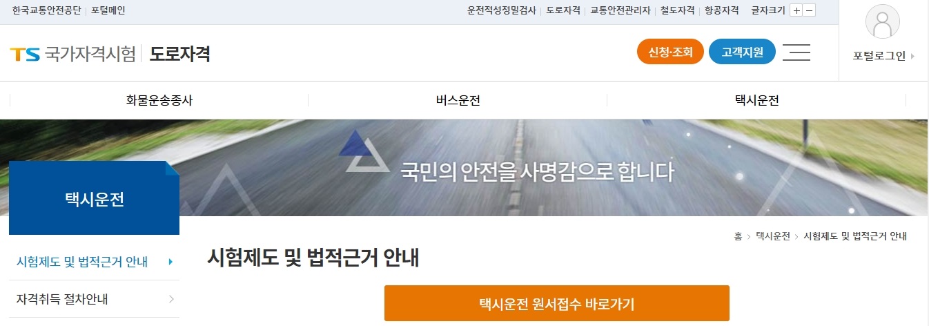 택시운전자격시험 인터넷접수 일정 시험기준 안내