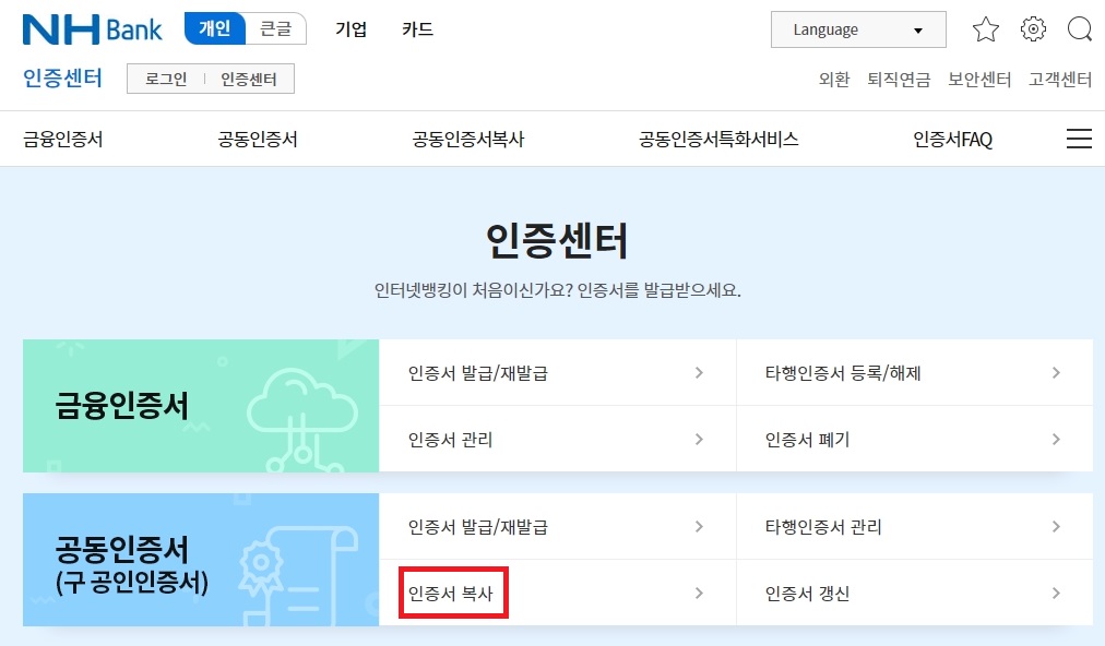 농협 인터넷뱅킹 공인인증서 내보내기