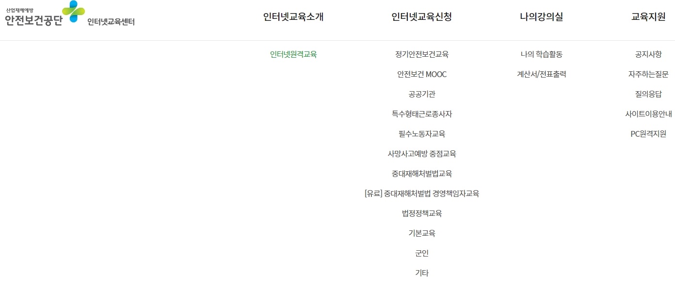 바로 위의 사이트가 안전보건공단 인터넷교육센터의 주소인데요. 검색을 하여 접속을 하셔도 무방합니다.