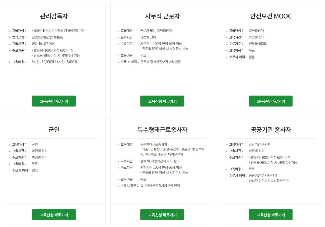 교육대상에 따라서 교육이 조금씩 다르기 때문에 맞는 교육 신청을 하여 수료를 하셔야만 하는데요. 자세하게 설명이 되어 있기 때문에 어려움은 없으실거에요.